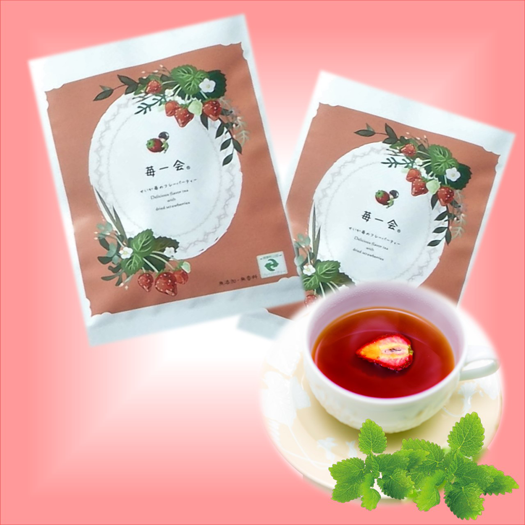 京都・和束町産の「無農薬茶葉」(和紅茶・ネトル・レモンバーム)を使った「苺のフレーバーティー」です。